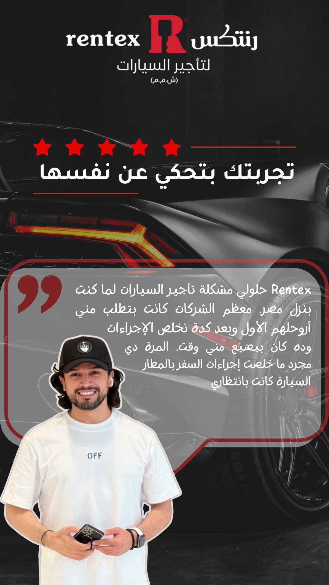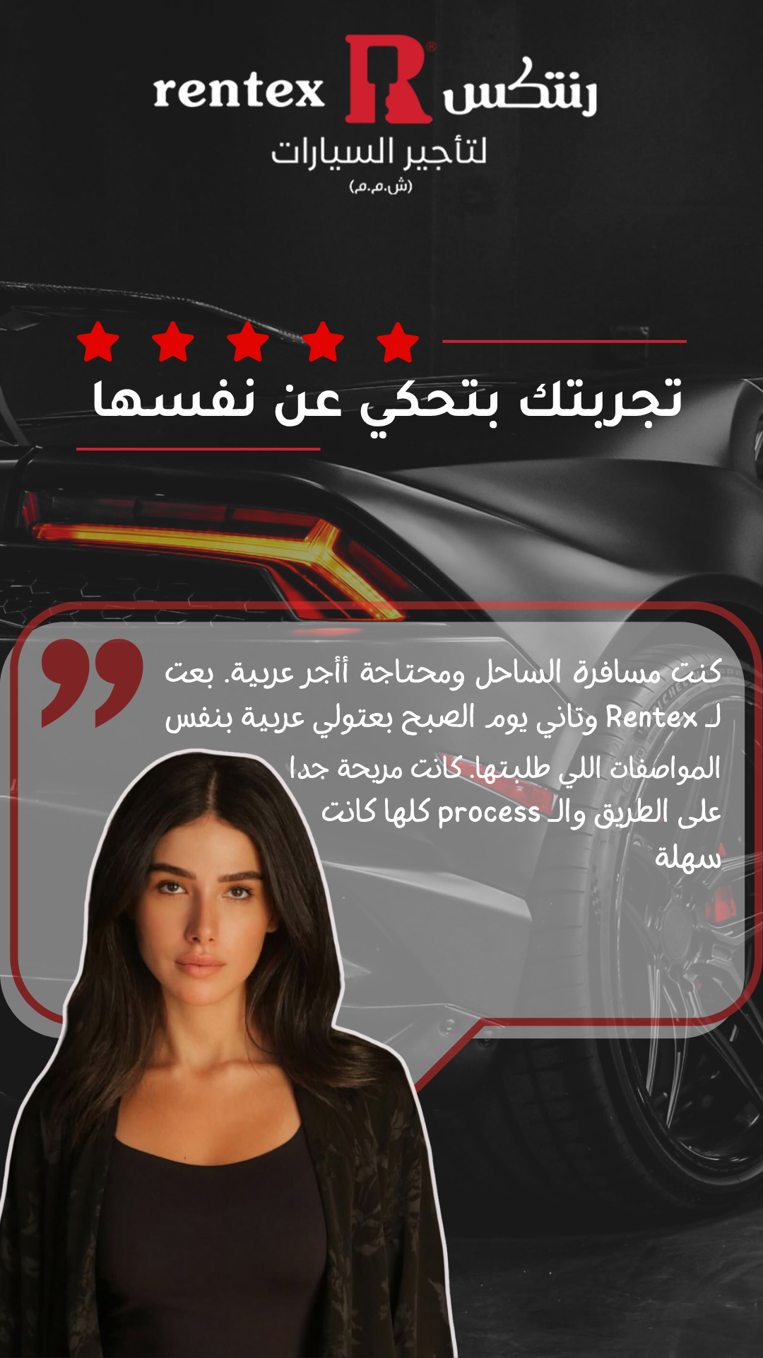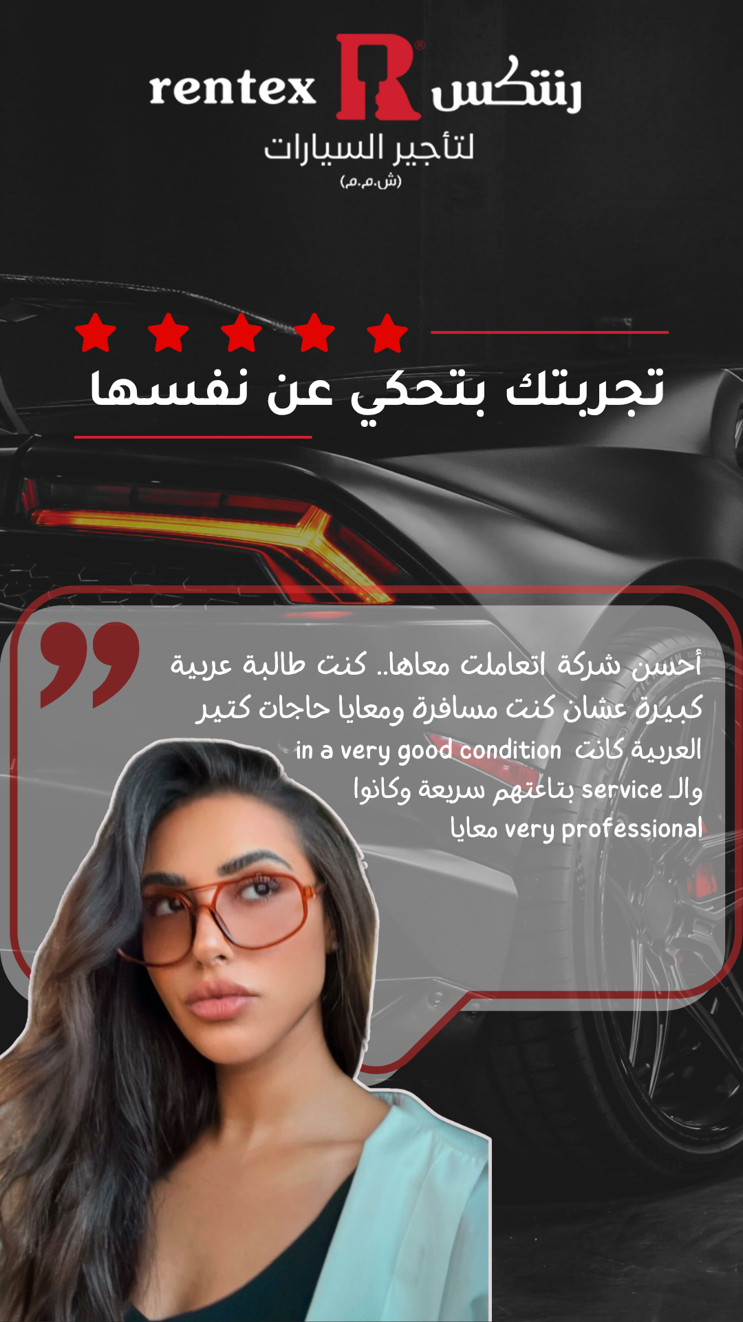 لأن رنتكس دايما معاك.-إستمتع بأسهل إجراءات للتأجير .-أستمتع بخدمة الإيجار بالسائق أو بدون.-خدمة عملاء ٢٤ ساعة. -وأسرع توصيل سياره لحد باب بيتك .